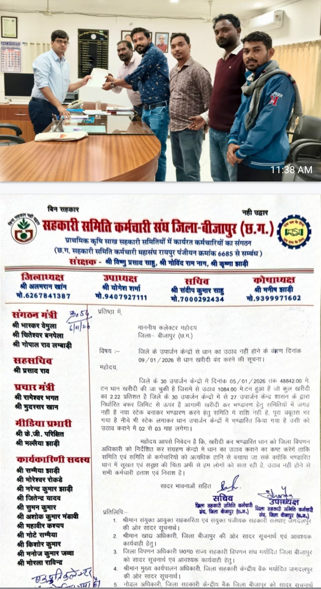 संघ ने कलेक्टर से मांग की है कि जिला विपणन अधिकारी को तत्काल निर्देश देकर केंद्रों में रखे धान का शीघ्र उठाव कराया जाए, ताकि समितियों और कर्मचारियों को अव्यवस्था का सामना न करना पड़े। साथ ही लंबे समय तक धान केंद्रों में पड़े रहने से उसकी सुरक्षा और गुणवत्ता प्रभावित होने की आशंका भी जताई गई है।