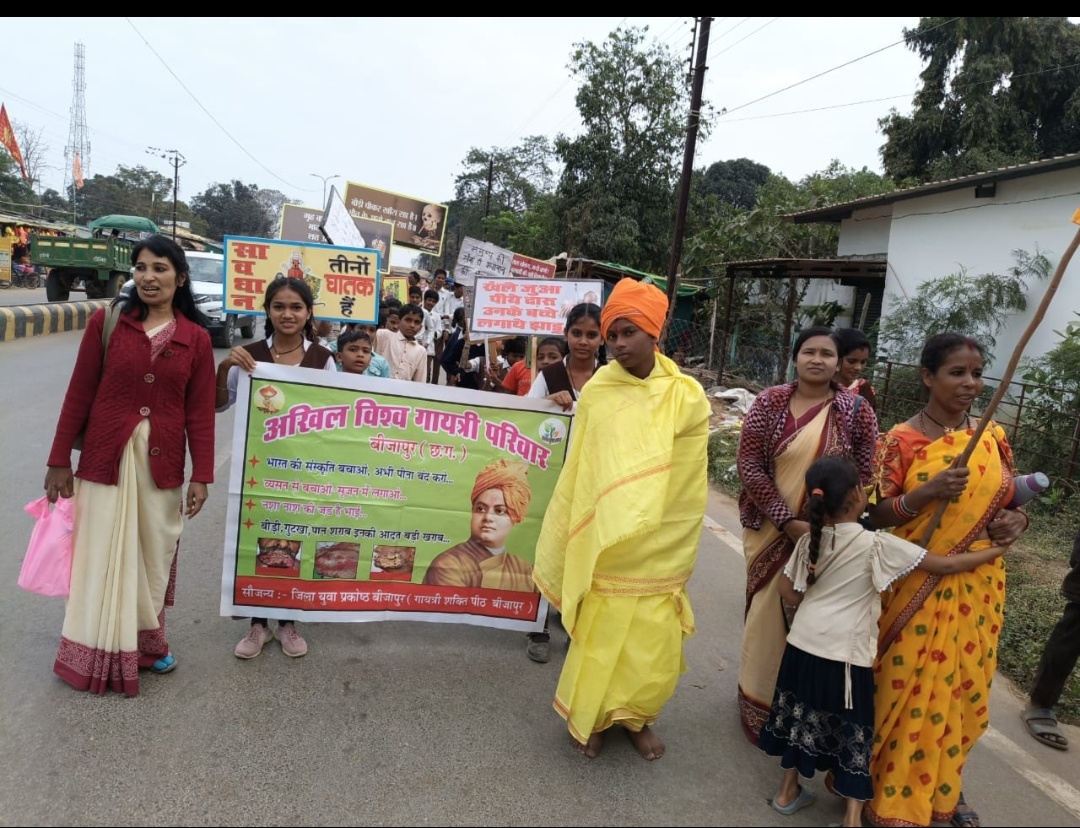 नशा मुक्ति रैली निकालकर गायत्री परिवार ने मनाया स्वामी विवेकानंद जयंती