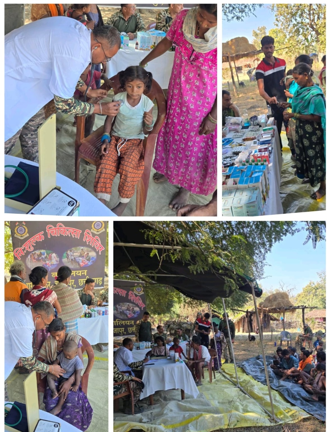 डॉक्टर शुभम नितिन पंवार, चिकित्सा अधिकारी 196 वी वाहिनी ने ग्रामीणों की स्वास्थ्य जांच की तथा उनके स्वास्थ्य के लिए आवश्यक दवाइयों को वितरित कराया। इस शिविर के दौरान कैम्प के नजदीकी गांवों में अस्वस्थ ग्रामीणों के अतिरिक्त बच्चों, बुजुर्गों व महिलाओं के लिए वर्तमान मौसम की बीमारियों के लिए आवश्यक दवाइयों को भी वितरित्त किया गया।