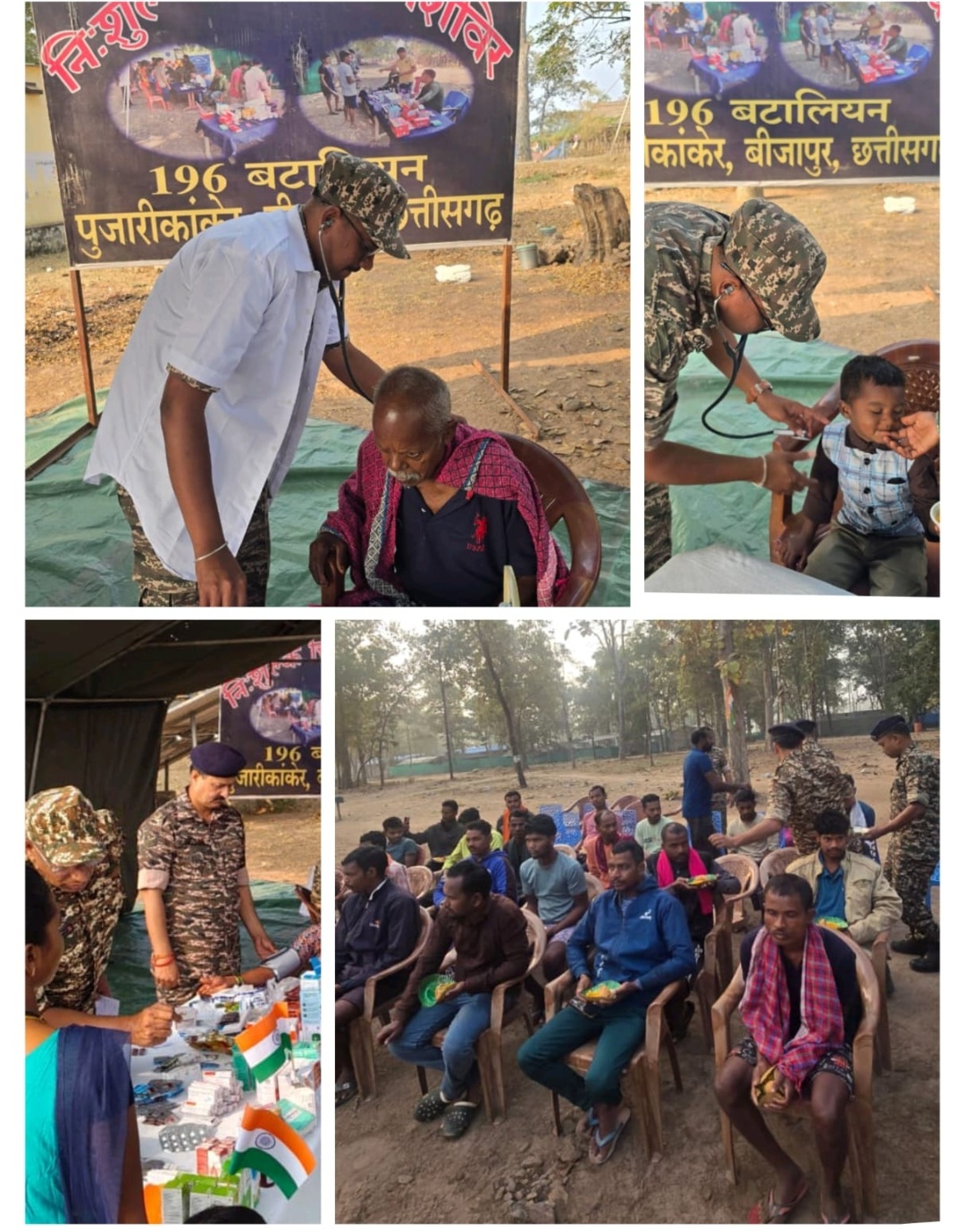 196 बटालियन केरिपुबल ने पूजारि कांकेर के तमिल भट्टी पारा में लगाया निःशुल्क चिकित्सा शिविर ग्रामीणों, बच्चों महिलाओं व बुजुर्गों की चिकित्सा जांच कर बांटी गई निःशुल्क दवाइयां।