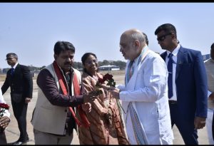 केन्द्रीय गृह मंत्री श्री अमित शाह का जगदलपुर के मां दंतेश्वरी एयरपोर्ट में आत्मीय स्वागत ।