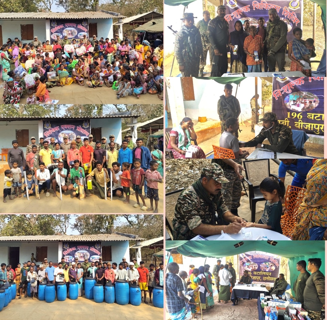 “आज दिनांक 23/02/2026 को 196 बटालियन, Central Reserve Police Force द्वारा नम्बी, बीजापुर (छत्तीसगढ़) में श्री शालीन,पुलिस महानिरीक्षक, CG Sector, श्री बी. एस. नेगी, पुलिस उप महानिरीक्षक (परि.) रेंज बीजापुर के कुशल मार्गदर्शन मे एवं श्री कुमार मनीष, कमांडेंट-196 की अध्यक्षता में, श्री रमेश नायक, (सहा. कमा.- नम्बी कैम्प कमाण्डर) की उपस्थिति में सिविक एक्शन कार्यक्रम एवं निःशुल्क चिकित्सा शिविर का आयोजन किया गया।”*