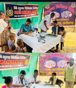 सिविक एक्शन कार्यक्रम एवं वरिष्ठ चिकित्सा अधिकारी डॉ साई कृष्णा, श्री शुभम नितिन पँवार, चिकित्साधिकारी 196 वी वाहिनी की उपस्थिति में निःशुल्क चिकित्सा शिविर आयोजित का आयोजन किया गया।”