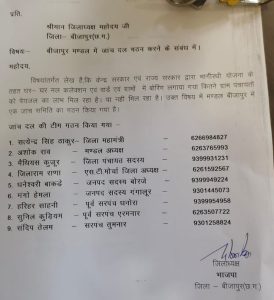 जिले के उर्जावान जुझारू कर्मठ भाजपा अध्यक्ष श्री घासी राम नाग ने माननीय नरेंद्र मोदी जी के सपनों पर पानी फिरता देख तत्काल जाँच दल टीम का किया गठन