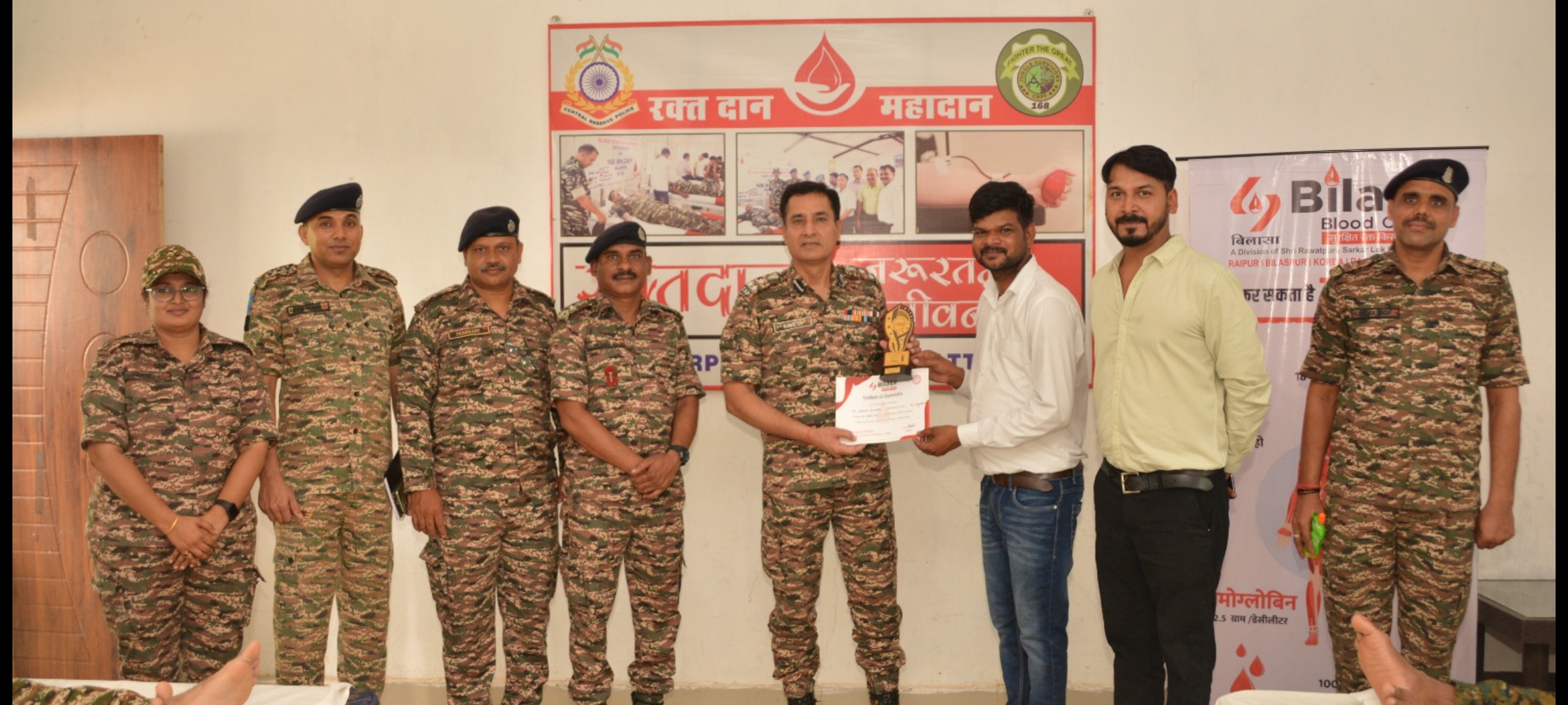 शिविर में रक्तदान करने वाले सभी अधिकारियों और जवानों को बिलासा ब्लड सेंटर की ओर से प्रशस्ति ट्रॉफी एवं प्रमाण पत्र भेंट किए गए। इसके अतिरिक्त, 168 बटालियन ने सभी रक्तदाताओं के स्वास्थ्य लाभ को सुनिश्चित करने के लिए ताजे फल, जूस और पौष्टिक खाद्य सामग्री की विशेष व्यवस्था की थी।