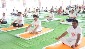 ग्यारहवे अंतराष्ट्रीय योग दिवस के अवसर पर नवोदय विद्यालय परिसर में विशाल जनसमुदाय ने सामूहिक रूप से किया योगाभ्यास