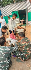 *🔳प्रेशर IED विस्फोट के कारण घायल ग्रामीण के पैर के तलवे में गंभीर चोटें आई हैं। घटना की जानकारी मिलते ही केन्द्रीय रिजर्व पुलिस बल (CRPF) कैम्प पुजारीकांकेर द्वारा त्वरित रूप से घायल ग्रामीण को प्राथमिक उपचार प्रदान किया गया एवं तत्पश्चात बेहतर उपचार हेतु सामुदायिक स्वास्थ्य केन्द्र, उसूर भेजा गया ।*