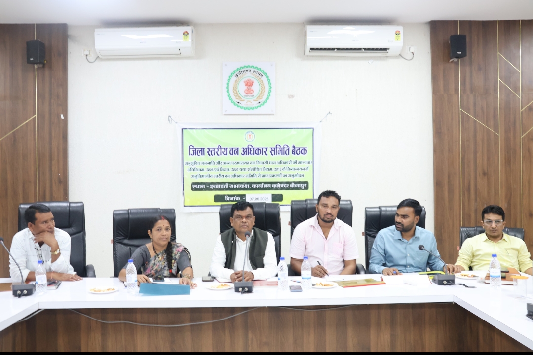 बीजापुर, 7 अगस्त 2025: कलेक्टर एवं जिला स्तरीय वन अधिकार समिति के अध्यक्ष की अध्यक्षता में आज प्रातः 11 बजे कलेक्टर कार्यालय के इंद्रावती सभाकक्ष में वन अधिकार समिति की बैठक आयोजित किया गया । बैठक में विभिन्न अनुभागों से प्राप्त पात्र एवं अपात्र व्यक्तिगत वन अधिकार पत्रों पर चर्चा किया गया।
