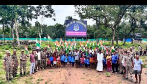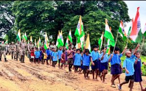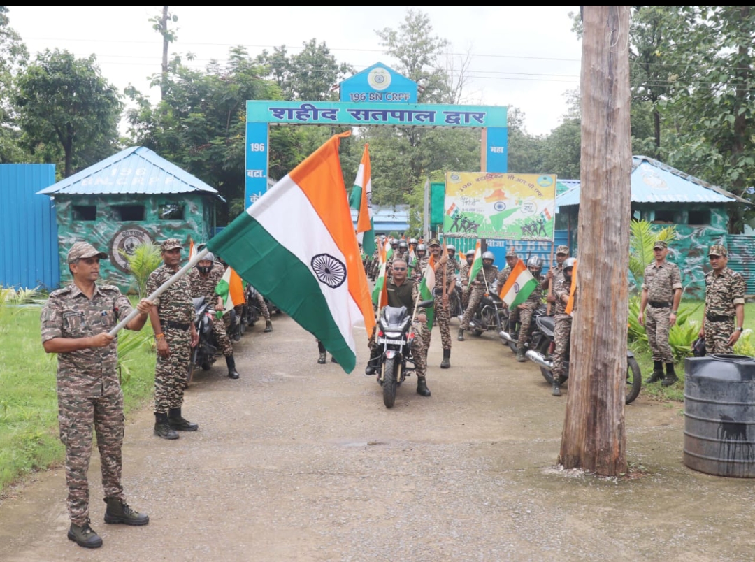 बीजापुर। देश भर में चल रहे ‘हर घर तिरंगा’ अभियान के तहत छत्तीसगढ़ के जिले बीजापुर में तैनात 196 बटालियन केंद्रीय रिजर्व पुलिस बल (सीआरपीएफ) ने देशभक्ति का एक अनूठा संदेश दिया ।