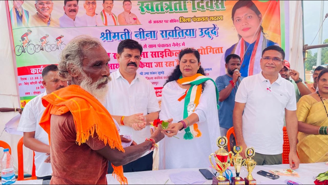 स्वतंत्रता दिवस के अवसर पर जिला पंचायत सदस्य और कांग्रेस नेत्री नीना रावतिया उद्दे ने नेमेड में विकासखंड स्तरीय सद्भावना साइकिल रेस प्रतियोगिता का आयोजन किया ।