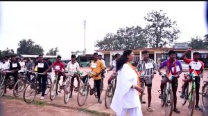 जिला पंचायत सदस्य नीना रावतिया ने विजेताओं को दिया साइकिल