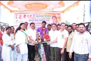 नेमेड के बस स्टैंड से मिनगाचल तक 10 किलो मीटर की साइकिल रेस को “स्वस्थ भारत मजबूत भारत” की थीम के साथ साइकिल की सवारी को पर्यावरण के अनुकूल होने का संदेश दिया गया ।