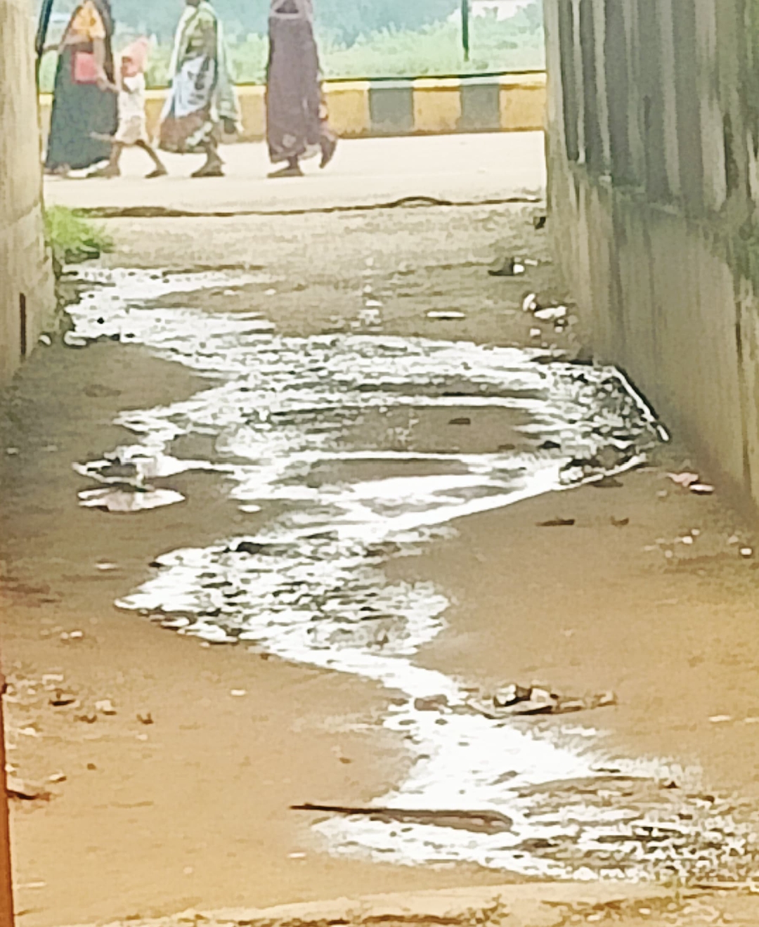 बीजापुर में नेशनल हाईवे सड़क के किनारे नाली होने के बावजूद